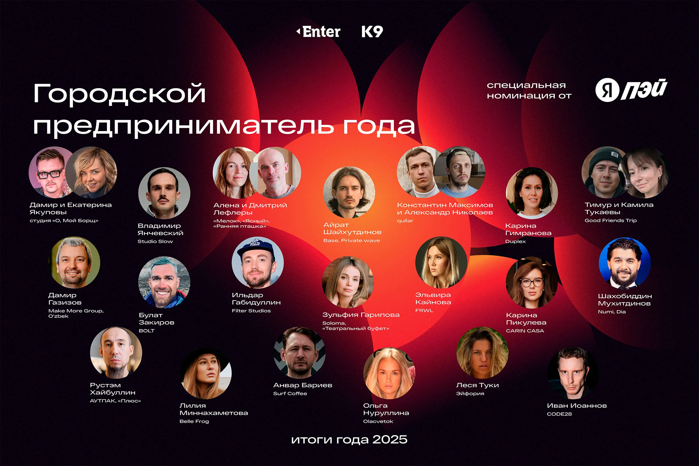 Редакция Enter и коммуникационное агентство К9 вновь запускает главную премию Татарстана в области городских индустрий «Итоги года: Город, люди и команды» при поддержке титульного партнера Яндекс Пэй и генерального партнера «КамаСтройИнвест». Уже восьмой раз в истории мы выделяем главные проекты, события и команды, которые повлияли на развитие и формирование среды.