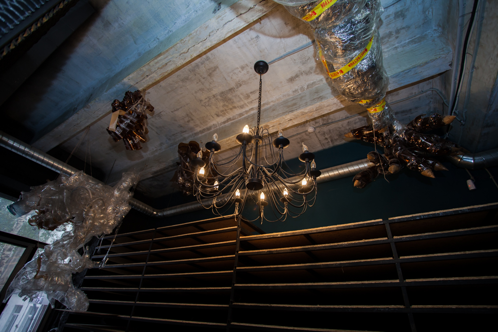 Дизайн везде один — стандартный blackbox: черные стены, деревянный пол, мобильные стулья. Не без «фишек», конечно: за красоту отвечают витая кованая люстра, сделанная по спецзаказу, а ещё пара зеркал в тяжёлых ажурных рамах. Но вообще, интерьер там меняется постоянно. Иногда под потолком висят декорации будущих спектаклей, иногда в холле стоят декорации спектаклей уже прошедших. Это могут быть как изящные венские стулья, так и непонятные пластиковые конструкции.