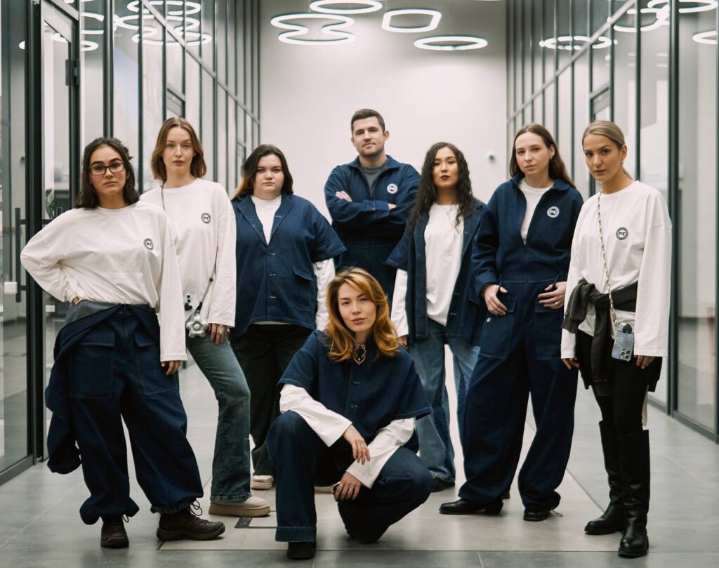 В коллекцию вошли универсальный комбинезон, джинсовая рубашка с возможностью авторской кастомизации, белый оверсайз-лонгслив, ремешок для телефона и брошь «ОЮ», созданная в коллаборации с «Металломанией» и ABAU. Авторскую кастомизацию рубашки выполняет художник и резидент «Реактора» Тимур Микулишна.