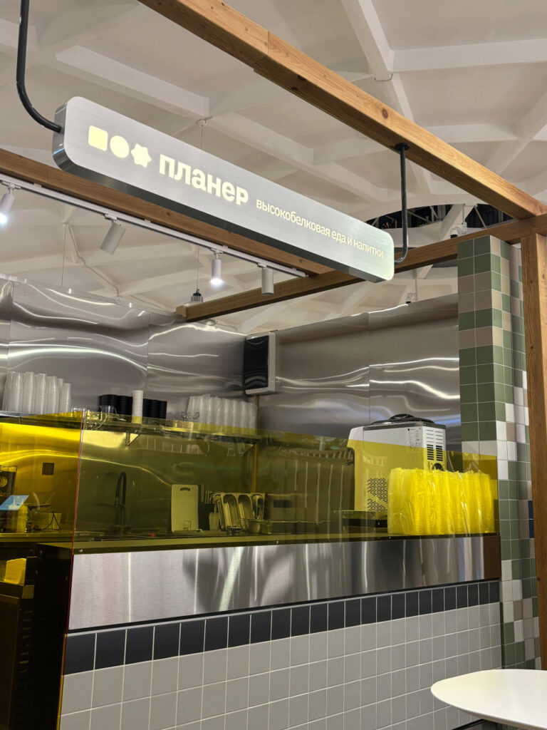 В настоящее время в «Планере» действует тестовое меню. В основное войдут высокобелковые йогуртовые боулы на основе натурального греческого йогурта с добавлением различных топпингов — сладкой и соленой гранолой, семенами, орехами и натуральными джемами. Кроме того, гости смогут попробовать авторские смузи, напитки на основе кокосовой воды и белковое мороженое.