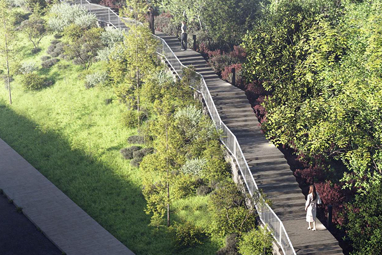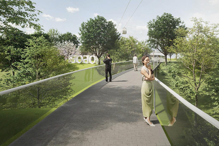 Согласно проекту, от центральной аллеи парка к спуску можно будет пройти либо по существующей дороге, либо через новый пешеходный мост. Напротив арт-объекта «Любовь — Мәхәббәт» предусмотрена смотровая площадка, после которой начинается спуск с ограждениями. Кроме того, в проекте запланированы зоны отдыха и озеленение территории. Общая площадь застройки составит 850 м².