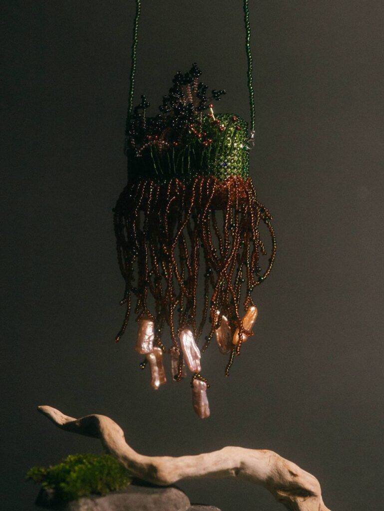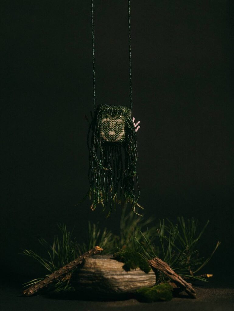 В основе экспозиции — переосмысление образов татарского фольклора. Су Анасы, Шурале и Уряк представлены через эстетику ugly shiny aesthetic с использованием барочного жемчуга, бисера и насыщенных цветов. В проекте чехол для AirPods становится объектом, который соединяет повседневный предмет с культурным образом.