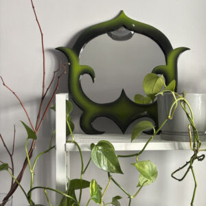 В работах современность сочетается с национальными мотивами. Бренд представляет и настенные, и карманные зеркала.