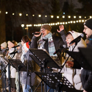 Новогодние и рождественские песни прямо у елки исполнят вокальный ансамбль «Атмосфера» и капелла Дмитрия Железнова. Мы тоже будем подпевать!