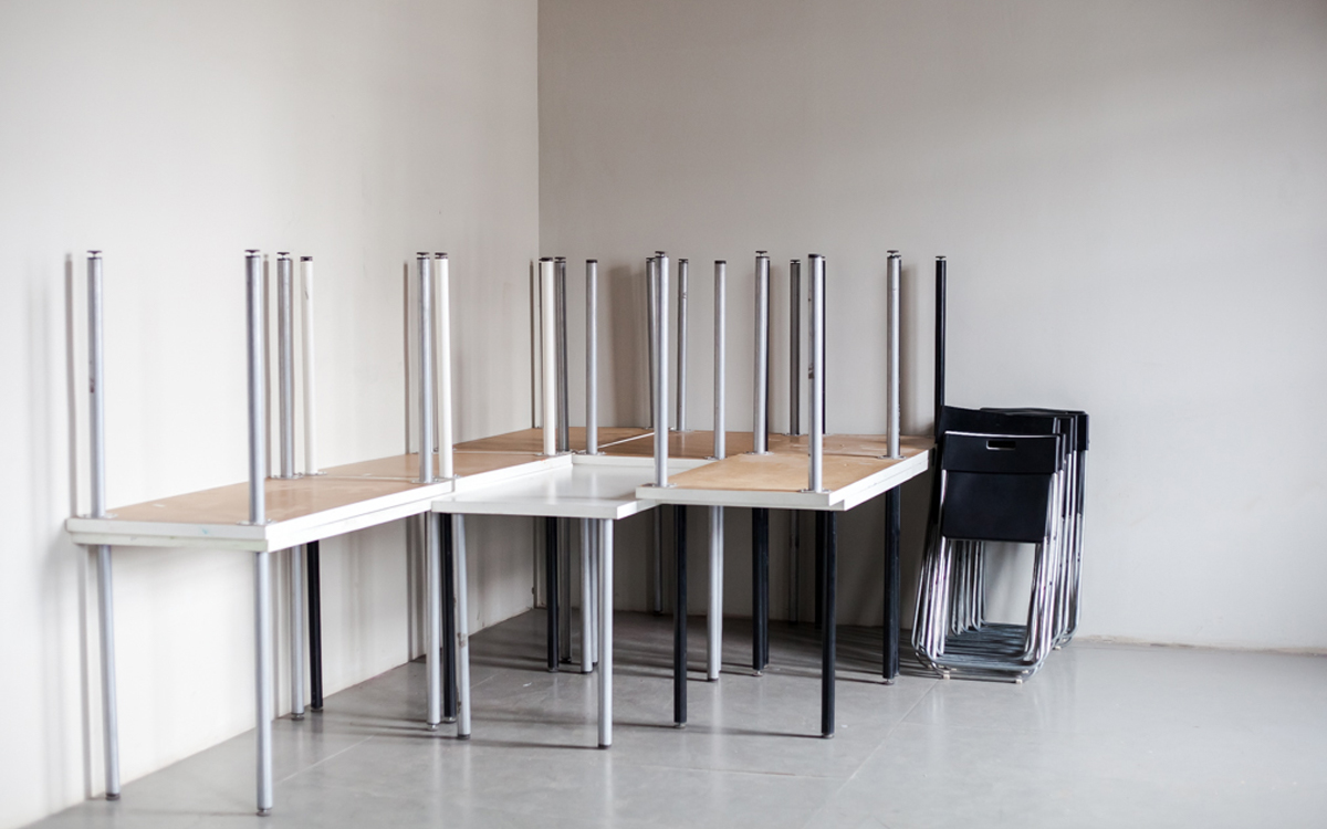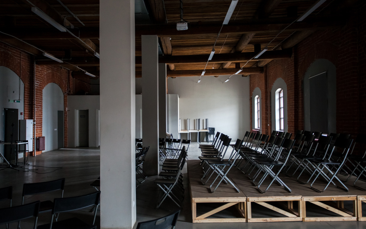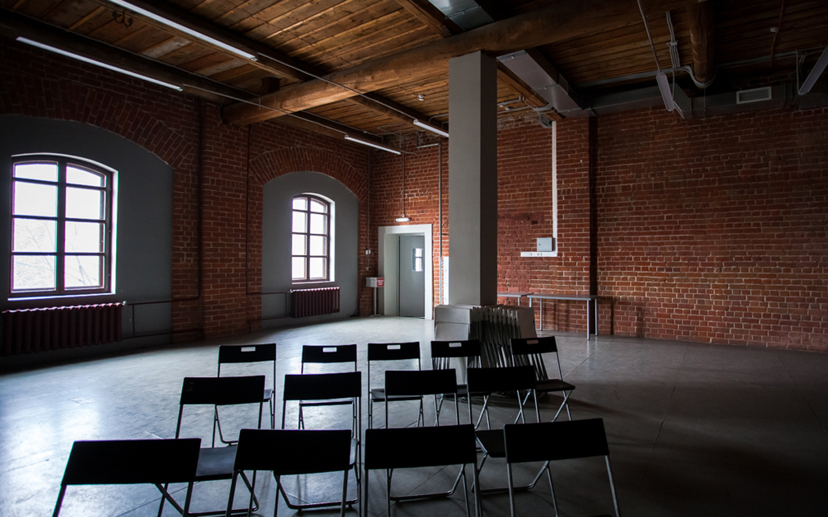К: У «Смены», несмотря на наличие таких гигантских помещений, толком нет рабочего пространства, а это плохо. У нас есть офис — комната, недоступная для посетителей, которая сейчас выполняет функцию склада. Дело в том, что у нас была довольно сильная реконструкция здания и, возможно, отопительную систему подключили не очень удачно. Всю зиму в нашем офисе было прохладно, и нам приходилось работать в другом месте, а эта комната тем временем превратилась в склад.