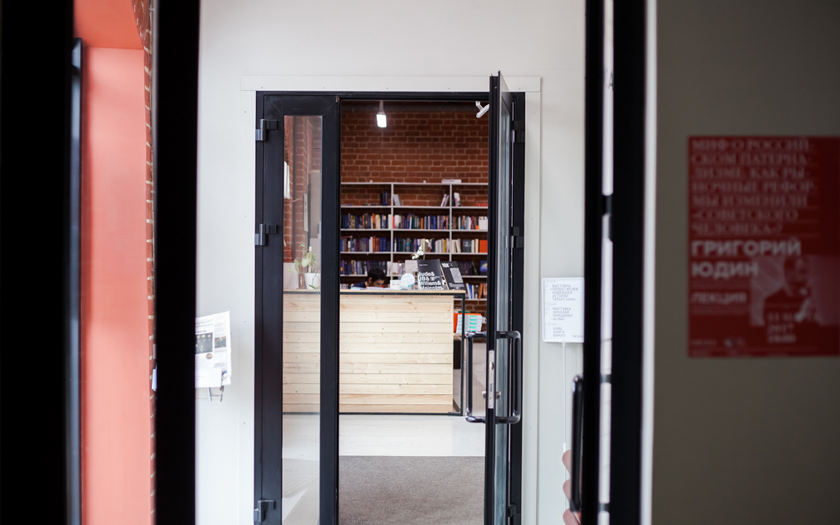 К: У нас нет должности «открывателя» «Смены». По большому счету, двери центра открывают три человека: двое из них остаются в книжном, а третий переходит в выставочное пространство. С тех пор, как мы переехали вниз, и у нас появилось отдельное помещение, операционной работы стало больше и нам стало сложнее контролировать потоки. До ремонта мы сидели на втором этаже, и один человек мог обслуживать и книжный магазин, и галерею, благодаря общему ресепшену. Сейчас же, поскольку книжный находится в стороне, мы вынуждены были поставить отдельного человека в выставочное пространство. Собственно, закрытием «Смены» занимаются те же люди, но это только в том случае, если кто-то не задерживается допоздна. Например, в последнее время Денис категорически отказывается куда-то уезжать и может просидеть тут до двух часов ночи, занимаясь делами и переписываясь с нами по рабочим вопросам в общем чате в телеграме.