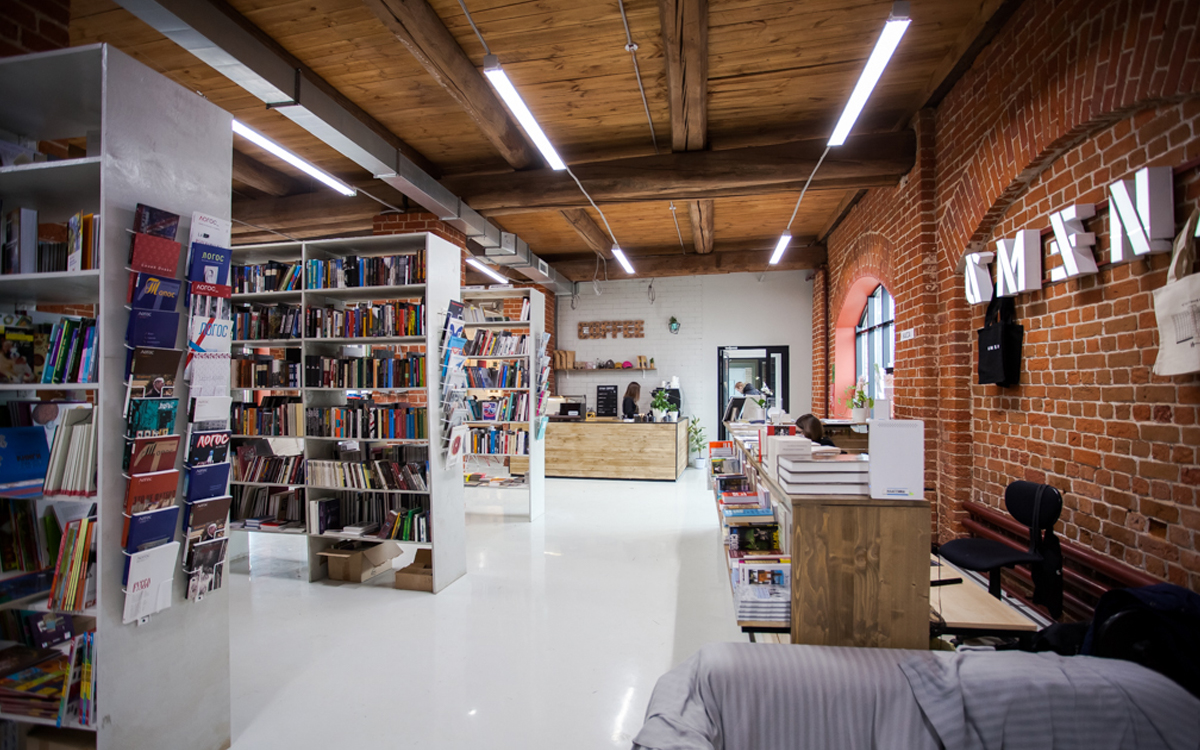 К: Довольно долгое время в этом здании вообще ничего не происходило, кроме автомойки на первом этаже, с которой нам пришлось соседствовать полтора года. На тот момент не было ни выставок, ни книжного магазина, вообще ничего. Событием, с которого начинается история ЦСК «Смена», стал зимний книжный фестиваль в декабре 2013 года. И уже впоследствии это мероприятие преобразовалось в наш традиционный формат. Вообще, книга как таковая играет в «Смене» важную роль: у нас есть книжный магазин, собственное издательство, мы дважды в год организовываем книжные фестивали. Кроме этого, проводим гигантское количество лекций, пусть даже и не связанных с книгой напрямую, но находящихся в плотном взаимодействии с ней. Можно считать, что это такое стихийно выросшее направление и даже ядро «Смены».